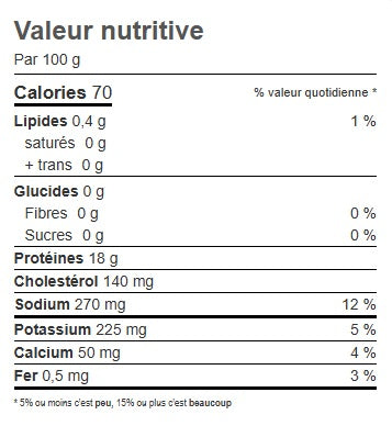 Crevettes, Eau, Sel, Phosphate de sodium (pour retenir l’humidité), Agents de sulfitage